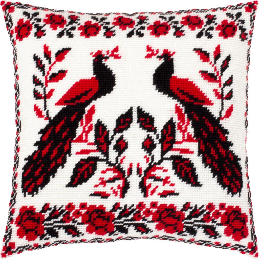 Готову вишивку можна оформити в декоративну подушку (потрібна зворотна частина наволочки) або використати як текстильний декор. Орнамент із птахами у традиційному стилі створює атмосферу затишку та гармонії в інтер’єрі.