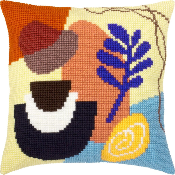 Набори включають усе необхідне: канву (часто з нанесеним малюнком), якісне муліне (Anchor, DMC, Madeira, Bestex тощо), голку, кольорову символьну схему та інструкцію. Є подушки в різних техніках: друкований або рахунковий хрестик, гобелен, вертикальний або декоративний стібок, килимова техніка. Розміри найчастіше 40×40 см. Доступні також задні частини наволочок для завершення виробу.