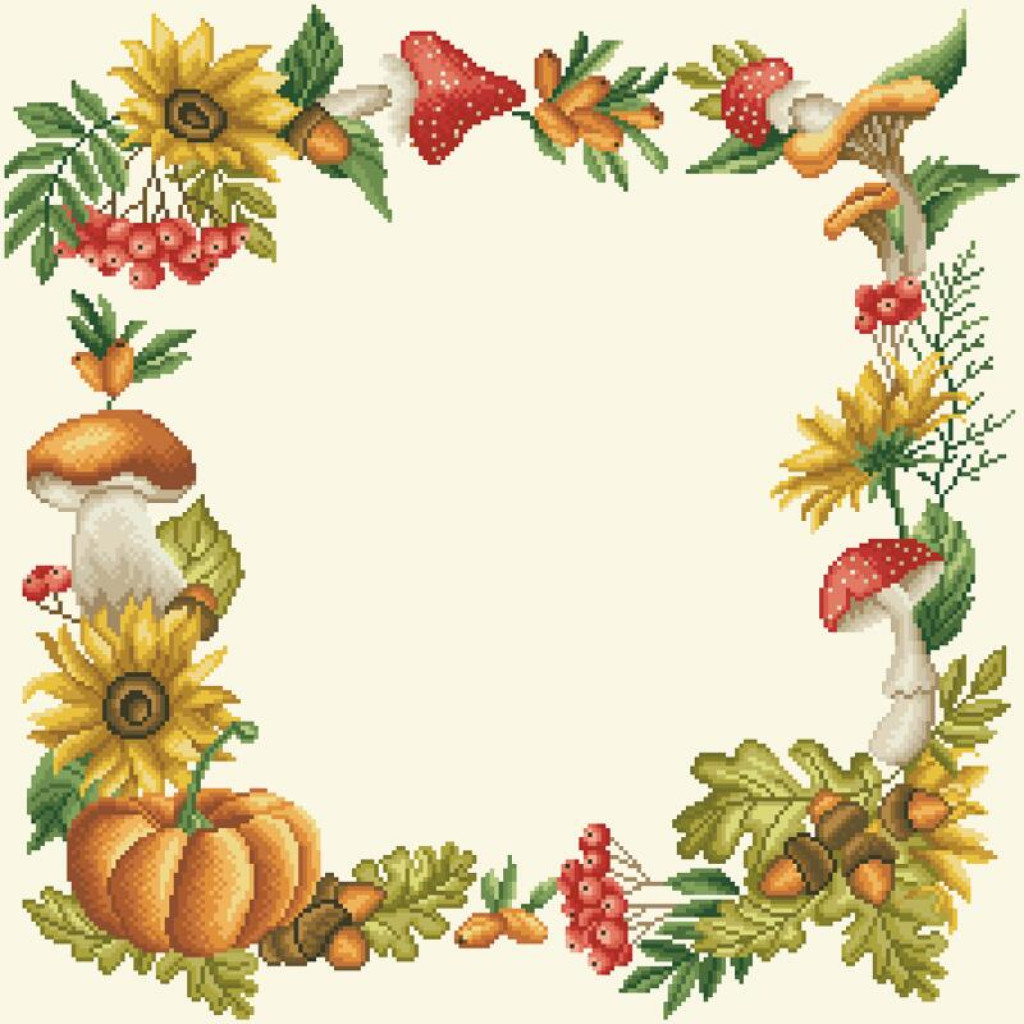 ТР895аМ5050i Барвиста вишиванка Набір для вишивки друкованим хрестиком - Скатертина Осінній оберіг 80x80 см (атлас бежевий)