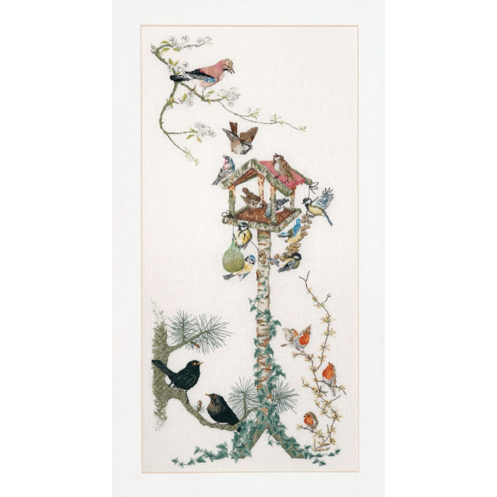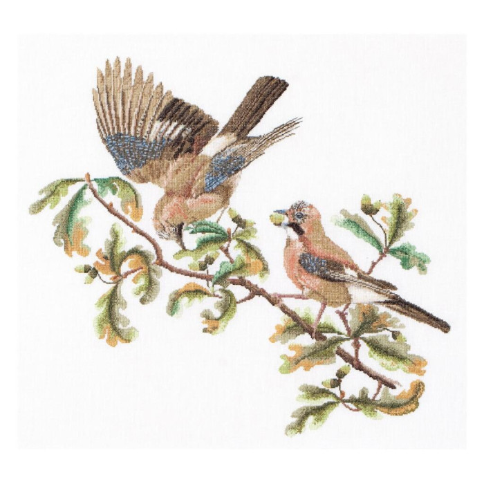 T2022 Thea Gouverneur Набір для вишивки рахунковим хрестиком - Сойки 50х56 см, Льон 36 ct