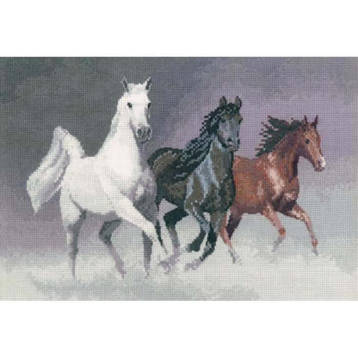 H1022 Heritage Crafts Набір для вишивки рахунковим хрестиком - Дикі коні 32x22 см, Linda 27 ct