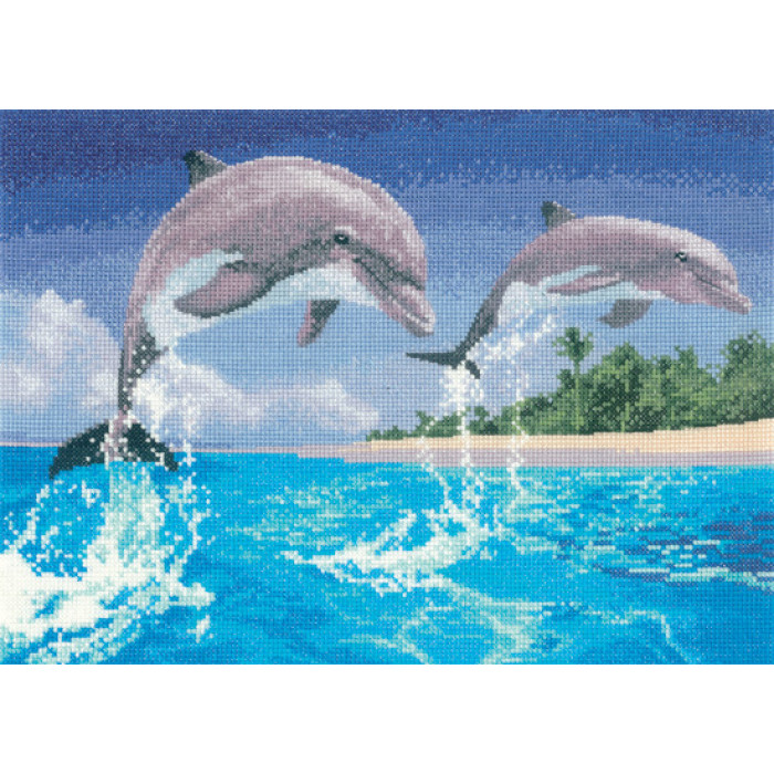 H1084 Heritage Crafts Набір для вишивки рахунковим хрестиком - Дельфини 32x22 см, Linda 27 ct