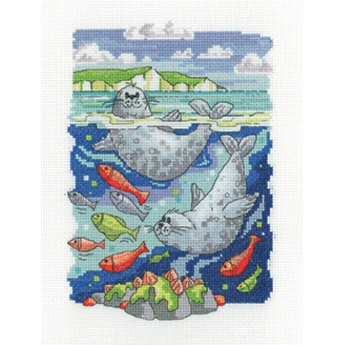 H1544 Heritage Crafts Набір для вишивки рахунковим хрестиком - Тюлені 14x20,5 см, Linda 27 ct