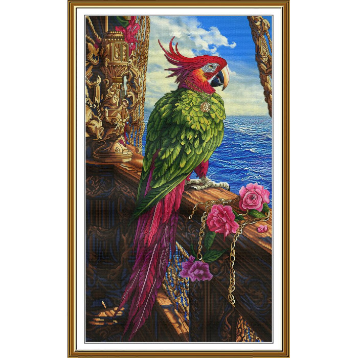 T605A Thea Gouverneur Набір для вишивки  рахунковим хрестиком - Папуга у цвіту Parrot in Bloom , 27x39 см, Aida 16