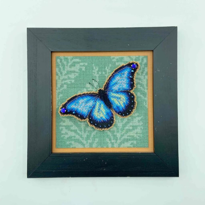 YuMI_052 Voloshka Набір для вишивки хрестом та бісером по пластику YuMI - Синій Метелик 12,7x12,7 см, Aida 14 ct