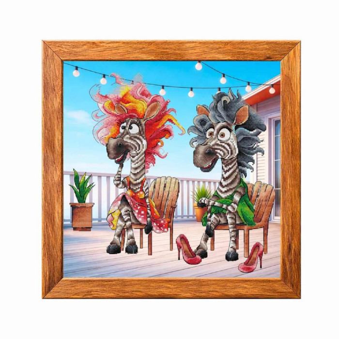 VMC_1029 Voloshka Набір для вишивки рахунковим хрестиком - Зебри в шоці 33x33 см, Aida 16 (канва з фоном)