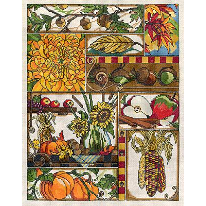 017-0103 Janlynn Набір для вишивки рахунковим хрестиком - Осінній колаж 28x35 см, Aida14
