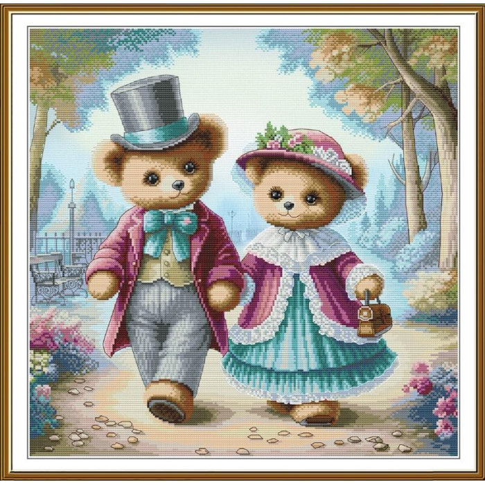 СР2383 Нова Слобода Набір для вишивки рахунковим хрестиком - Літній променад 36x36 см, Aida 16 (канва з фоном)