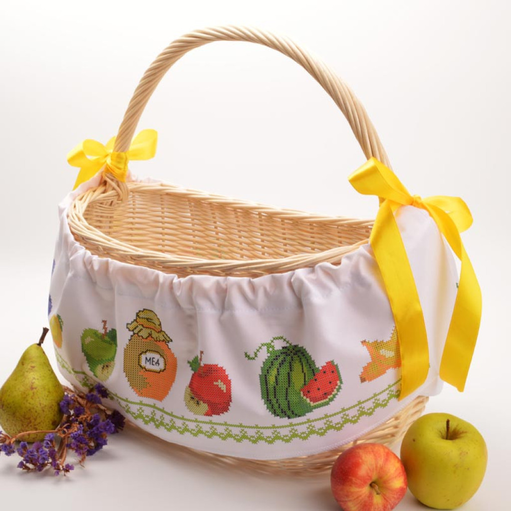 Схема надрукована екологічно чистими фарбами, які залишаються стійкими навіть після прання. Готові вироби чудово прикрасять кошик до Спаса або стануть тематичним елементом святкового декору.