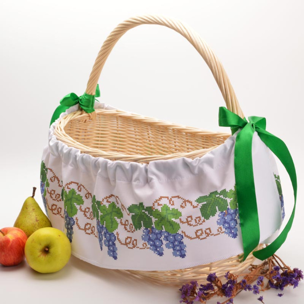 Схема надрукована екологічно чистими фарбами, які залишаються стійкими навіть після прання. Готові вироби чудово прикрасять кошик до Спаса або стануть тематичним елементом святкового декору.