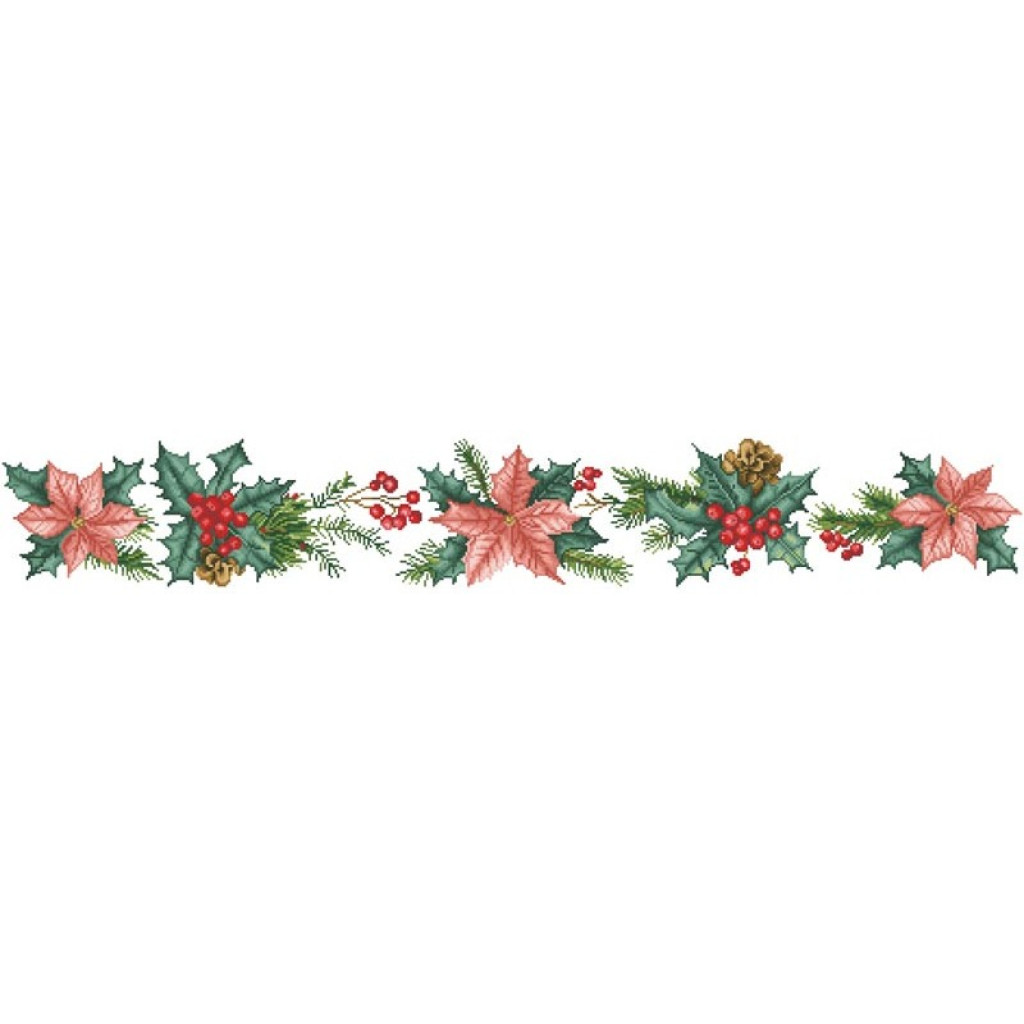 ТР889аБ9915i Барвиста вишиванка Набір для вишивки друкованим хрестиком - Ранер Новорічний букет 15x104 см (схема на атласі, колір білий)