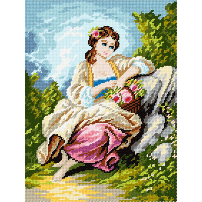 BE86 Чарівниця Набір для вишивки друкованим хрестиком - Садівниця, Ф. Буше 25x25 см (схема на канві)