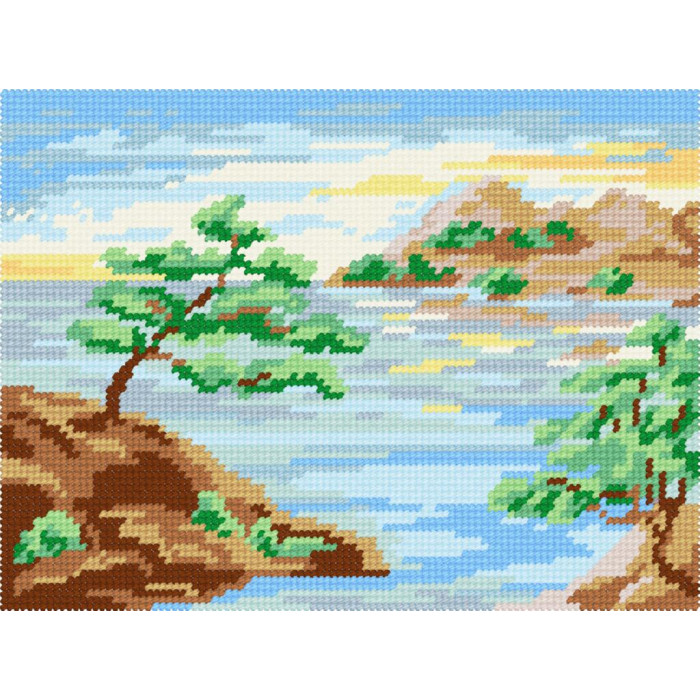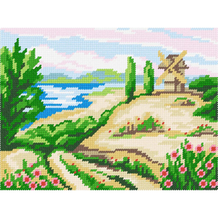 BH09 Чарівниця Набір для вишивки друкованим хрестиком - Пейзаж Млин у полі 18x24 см (схема на канві)