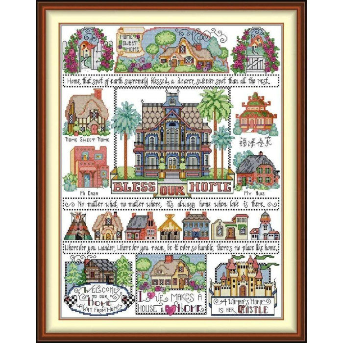 F443JS Тихий дворик, 46x46 см. Joy Sunday. Набір для вишивки хрестиком на канві з нанесеним малюнком