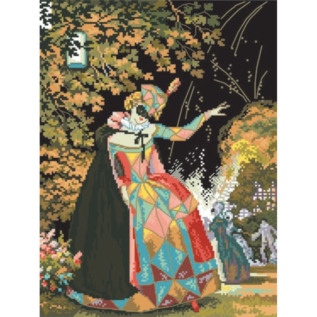 14-172 Інстинкт вишивання Схема на канві для вишивки хрестиком - Маскарад у саду 33x45 см, Aida 14 (з паперовою схемою)