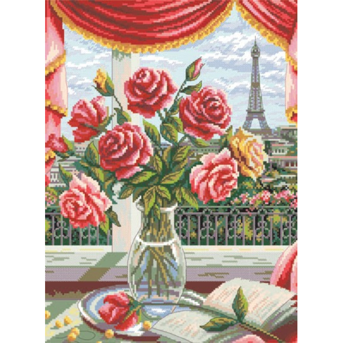 14-174 Інстинкт вишивання Схема на канві для вишивки хрестиком - Троянди Парижа 33x45 см, Aida 14 (з паперовою схемою)