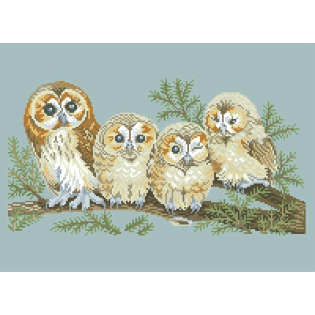 14-177 Інстинкт вишивання Схема на канві для вишивки хрестиком - Совина сім'я 33x45 см, Aida 14 (з паперовою схемою)