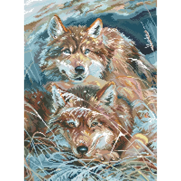 14-183 Інстинкт вишивання Схема на канві для вишивки хрестиком - Два вовка 33x45 см, Aida 14 (з паперовою схемою)