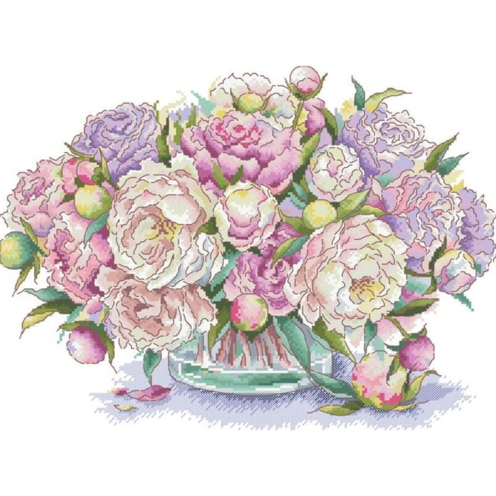 14-189 Інстинкт вишивання Схема на канві для вишивки хрестиком - Півонії 33x45 см, Aida 14 (з паперовою схемою)