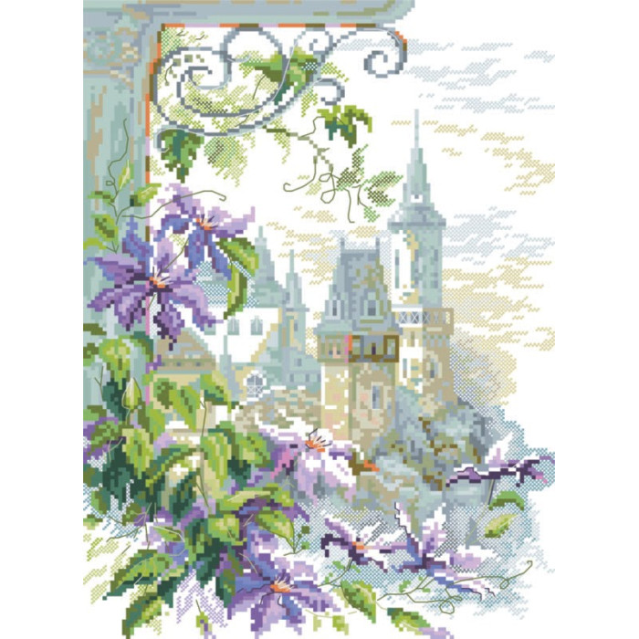 14-193 Інстинкт вишивання Схема на канві для вишивки хрестиком - Вид на місто 33x45 см, Aida 14 (з паперовою схемою)