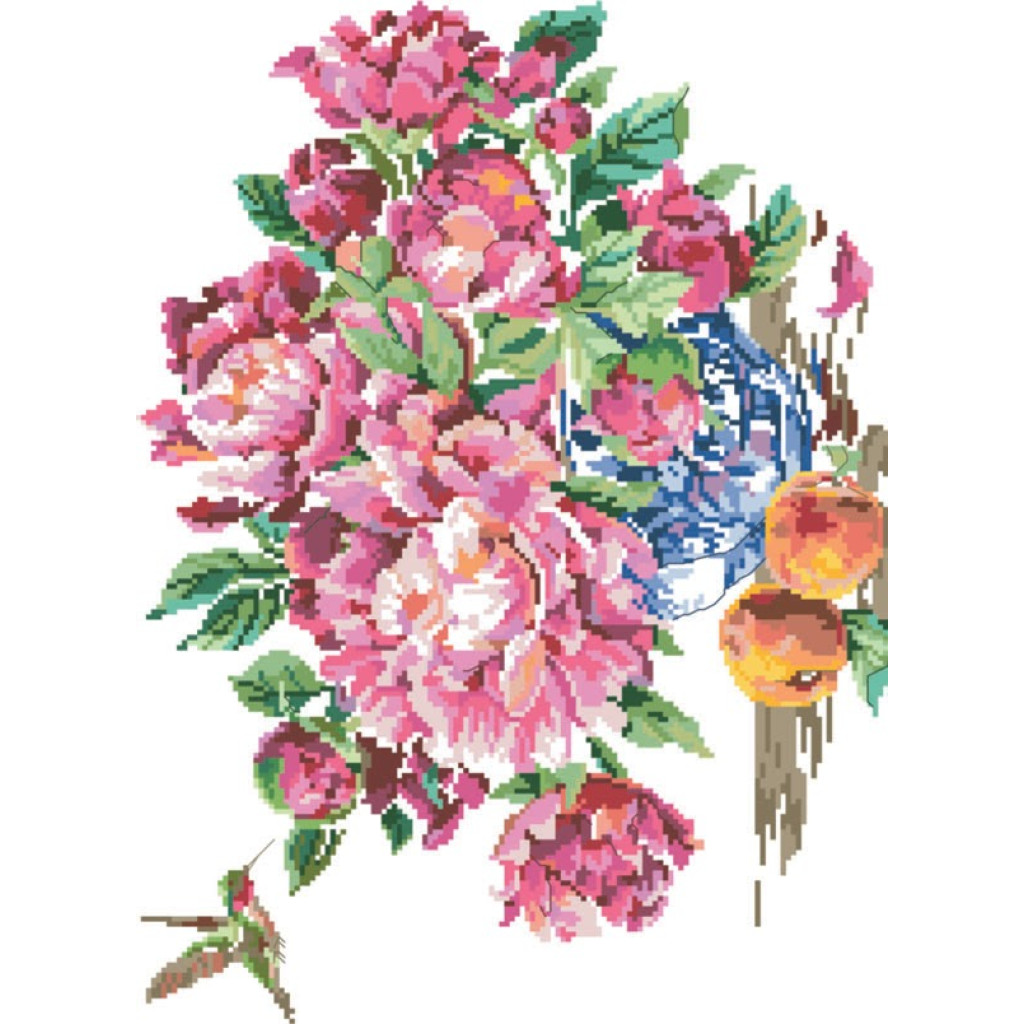 14-197 Інстинкт вишивання Схема на канві для вишивки хрестиком - Півонії і колібрі 33x45 см, Aida 14 (з паперовою схемою)