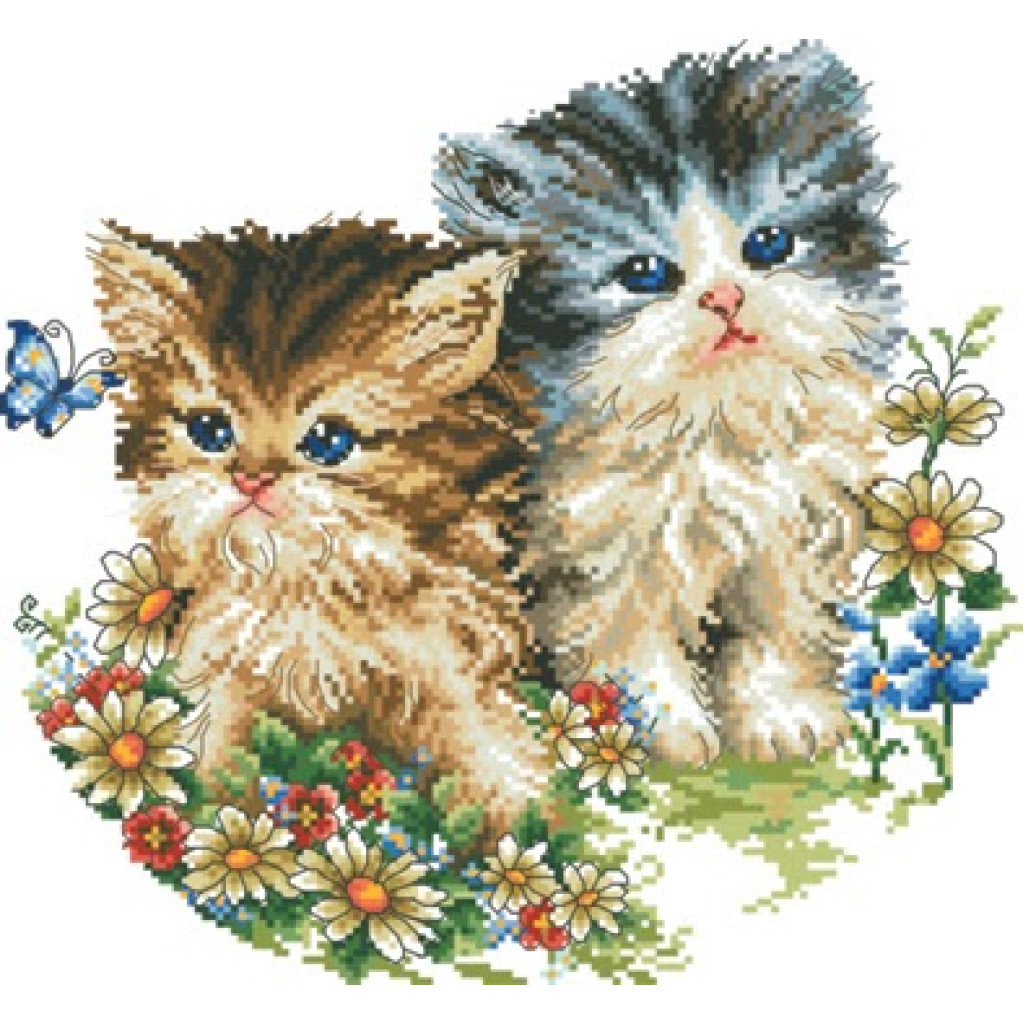 14-929 Інстинкт вишивання Схема на канві для вишивки хрестиком - Кошенята 33x33 см, Aida 14 (з паперовою схемою)