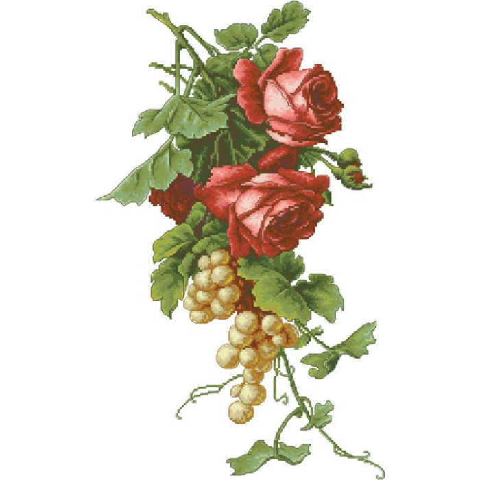 16-25 Інстинкт вишивання Схема на канві для вишивки хрестиком - Троянди з виноградом 33x45 см, Aida 16 (з паперовою схемою)