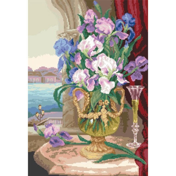 16-427 Інстинкт вишивання Схема на канві для вишивки хрестиком - Різнокольорові іриси 33x45 см, Aida 16 (з паперовою схемою)