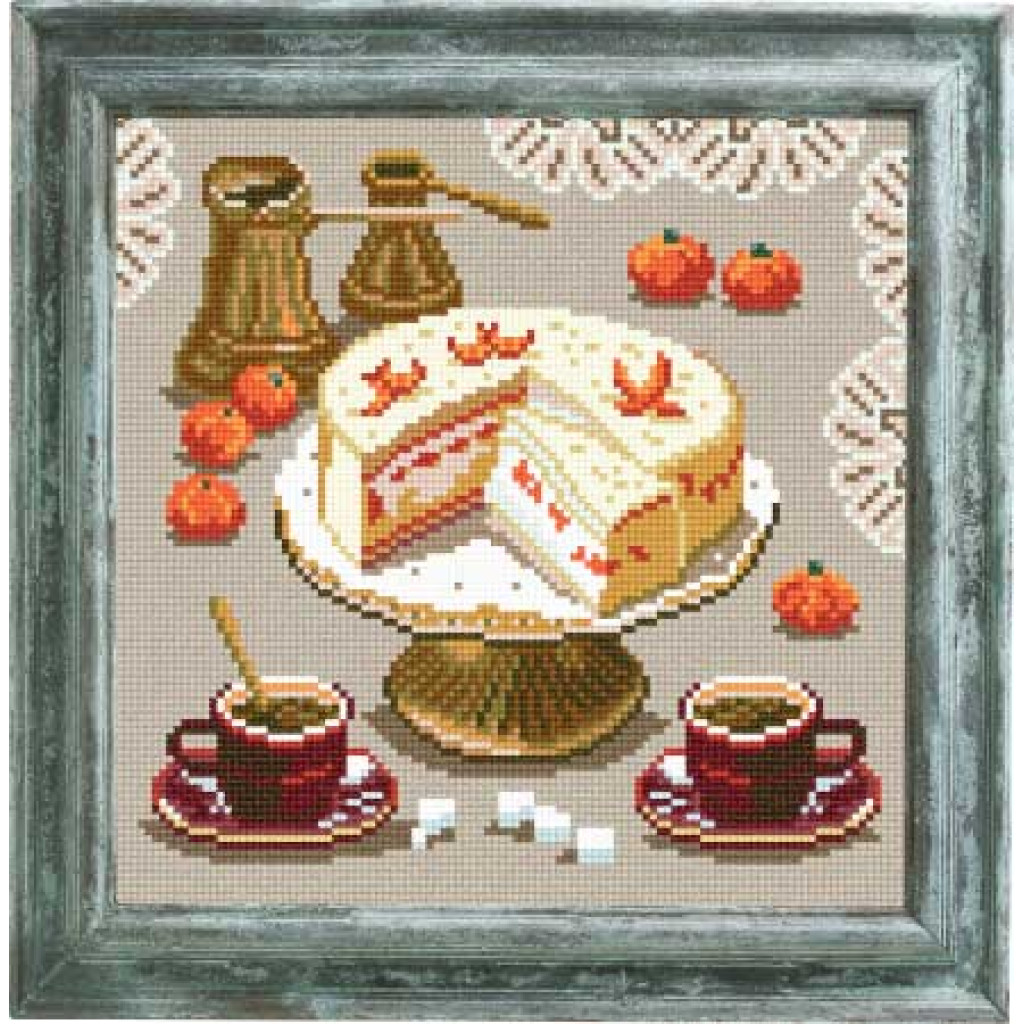 E17 Торт, мандарини і кави. Чарівниця. Канва з нанесеним малюнком