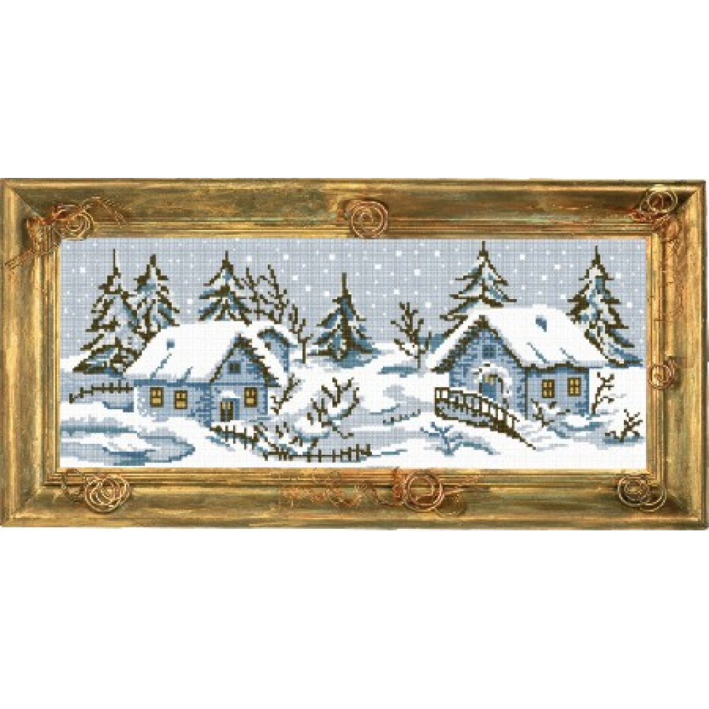 S14 Хуторок взимку. Чарівниця. Канва з нанесеним малюнком