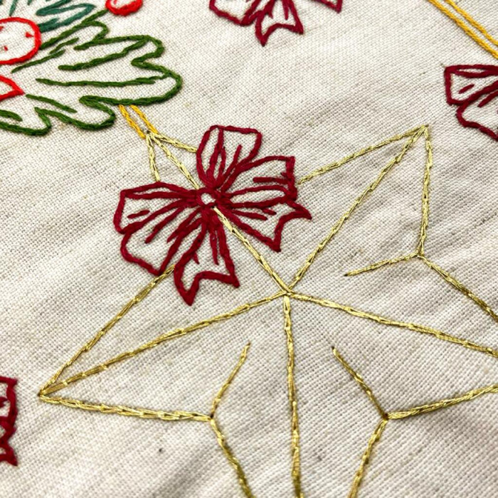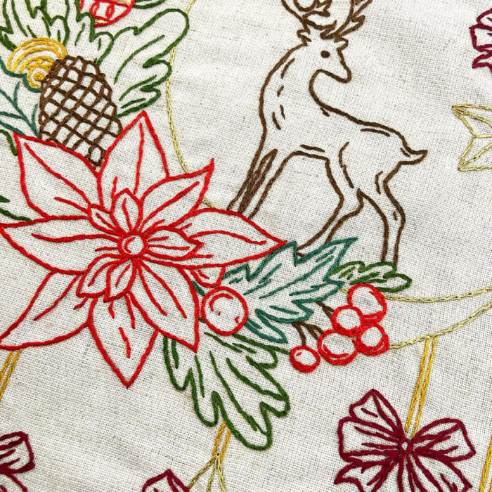На тканині нанесений контурний малюнок для вишивання, тож ви можете самостійно підібрати кольори ниток і виконати візерунок у власному стилі, перетворивши заготовку на ефектний елемент сервірування.