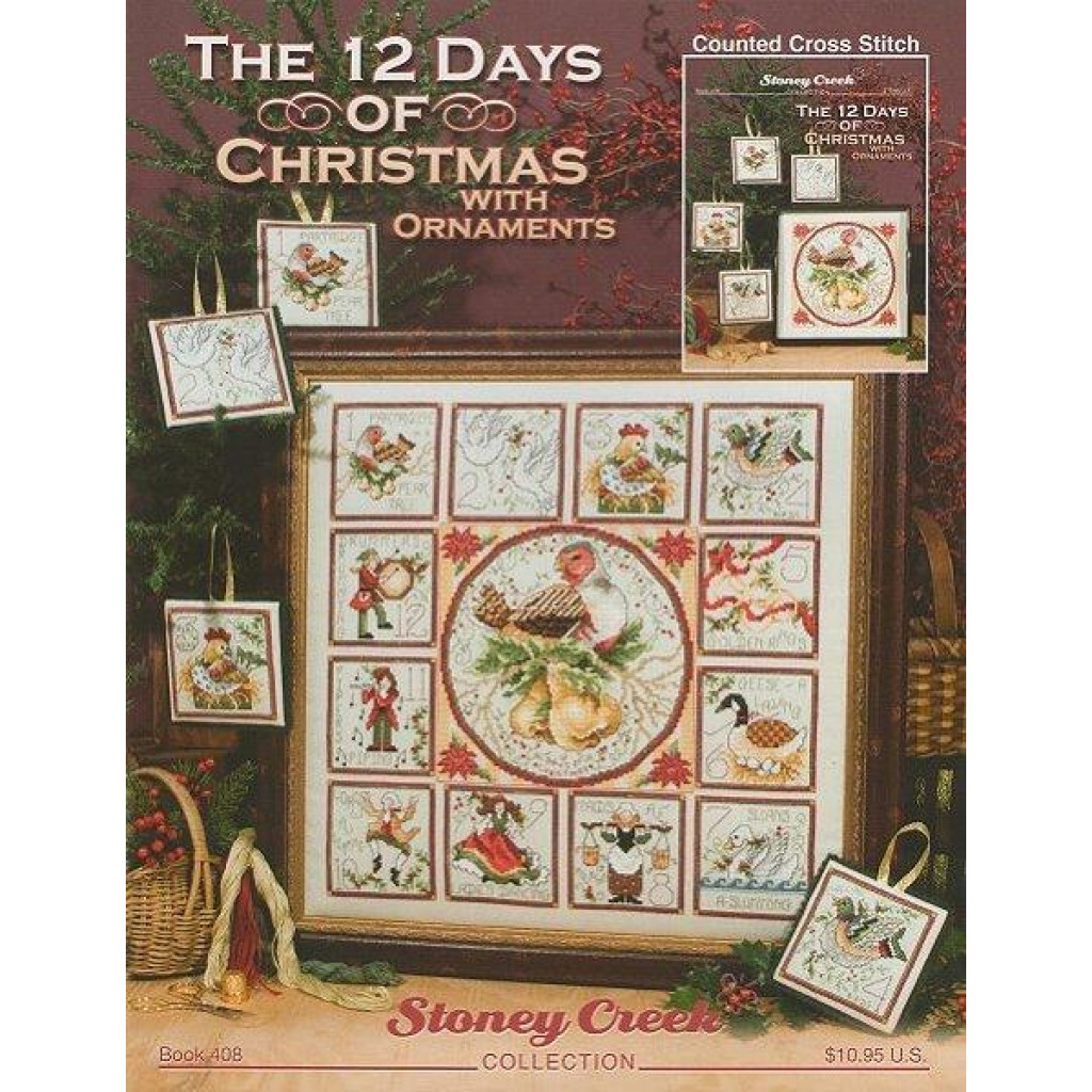 BK408 Stoney Creek Буклет схем для вишивки рахунковим хрестиком - The 12 Days of Christmas With Ornaments, папір