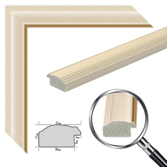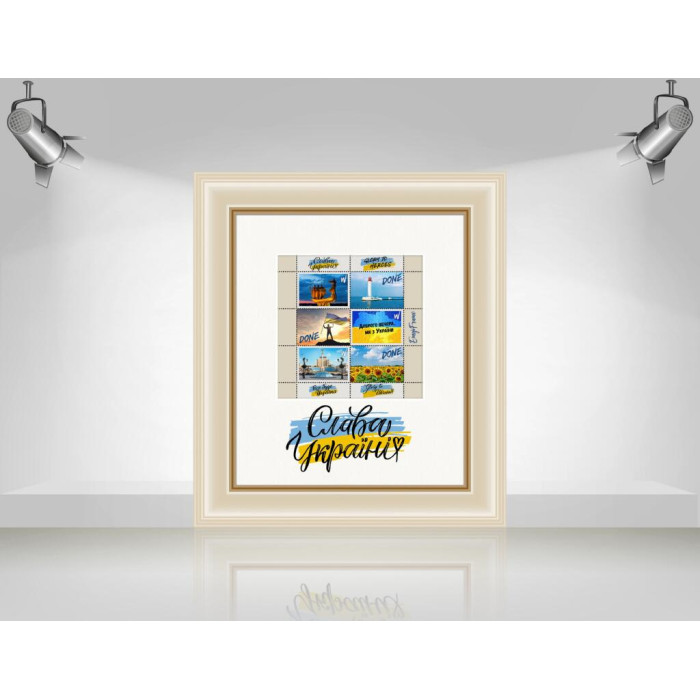 Фоторамка для марки W Done "Русский военный корабль..." "Слава Україні" 17.5-21 під марку 10.9-10.9 багет: 1171-0061 перламутр із золотом (з глянцевим прозорим пластиком 0.8мм, паспарту біле, двп) EmojiFrame