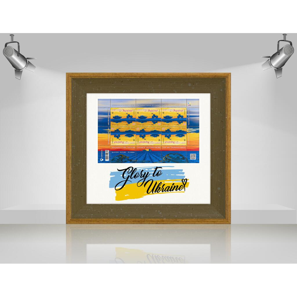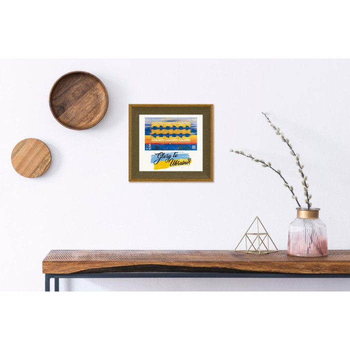 Фоторамка для марки W Доброго вечора "Glory to Ukraine" 18.6-20.7 під марку 10.2-16.2 баг:3448-A-C3 зелений із золотом (з антибліковим склом 2мм, паспарту біле, двп) EmojiFrame