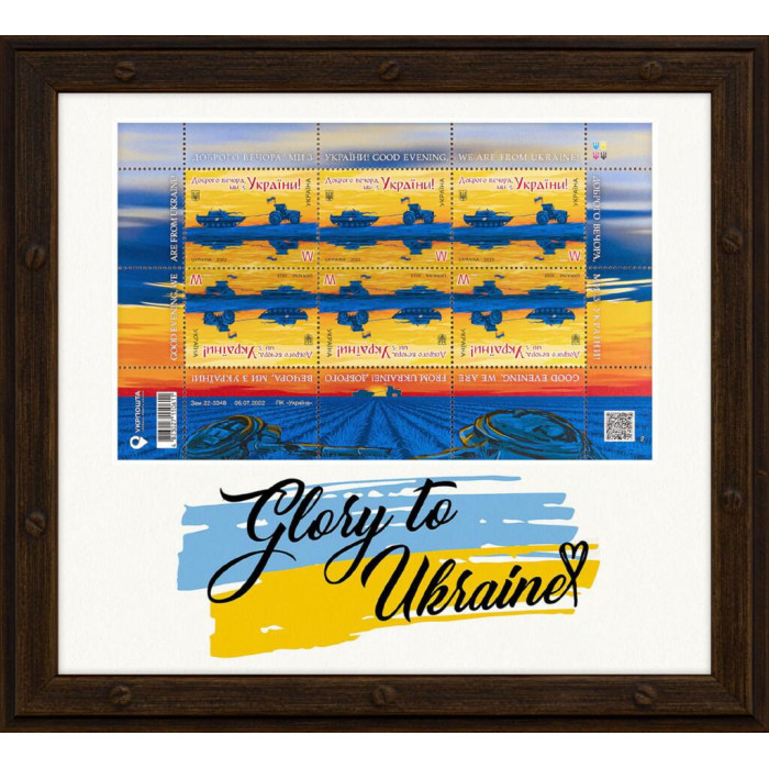 Фоторамка для марки W Доброго вечора "Glory to Ukraine" 18.6-20.7 під марку 10.2-16.2 баг:DL1903-03 бронза (з глянцевим прозорим пластиком 0.8мм, паспарту біле, двп) EmojiFrame