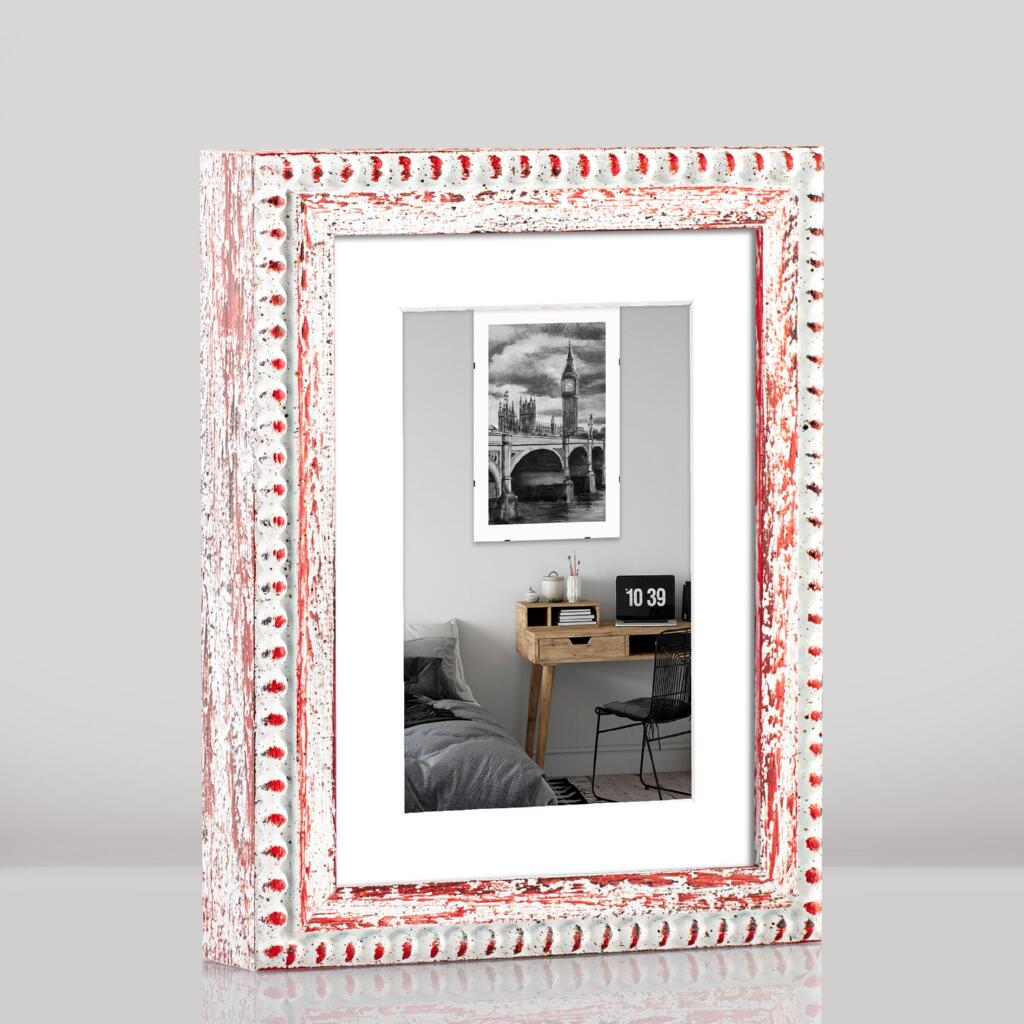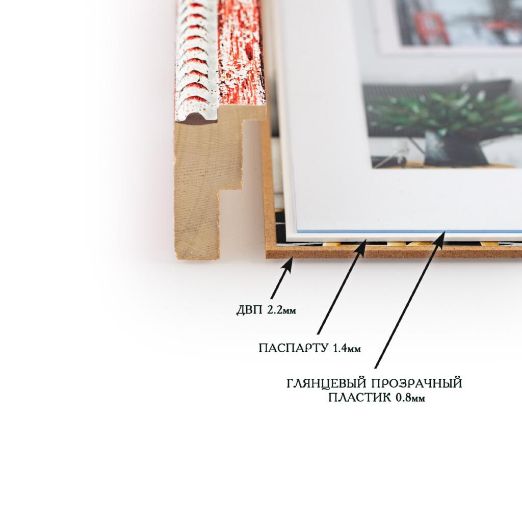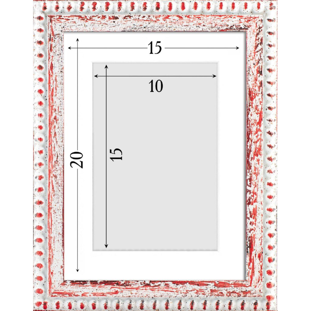 Фоторамка дерев'яна 15х20 під фото 10х15 багет: DL2506-12 Білий з червоним (з глянцевим прозорим пластиком 0.8мм, двп, паспарту) EmojiFrame