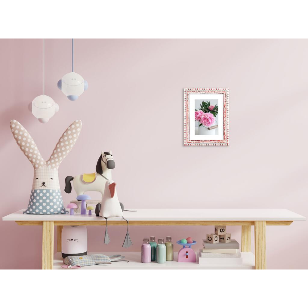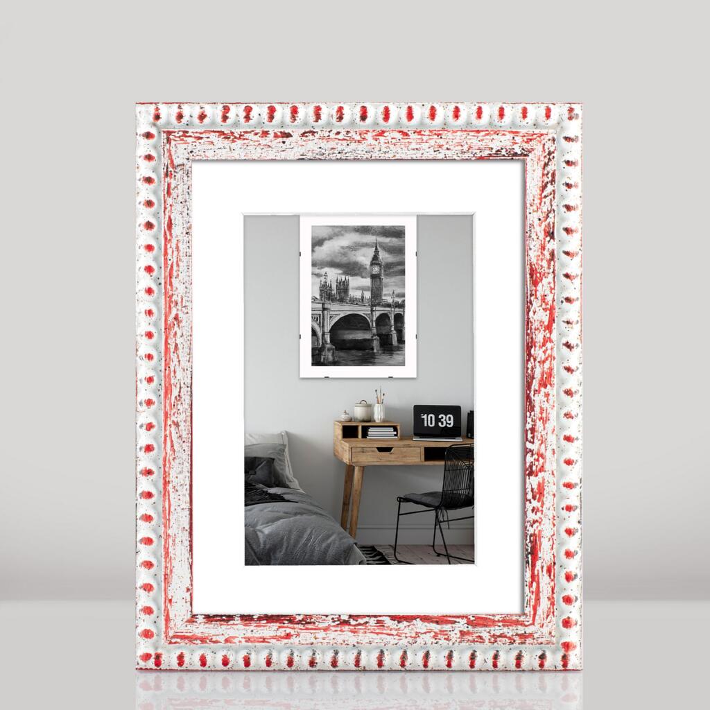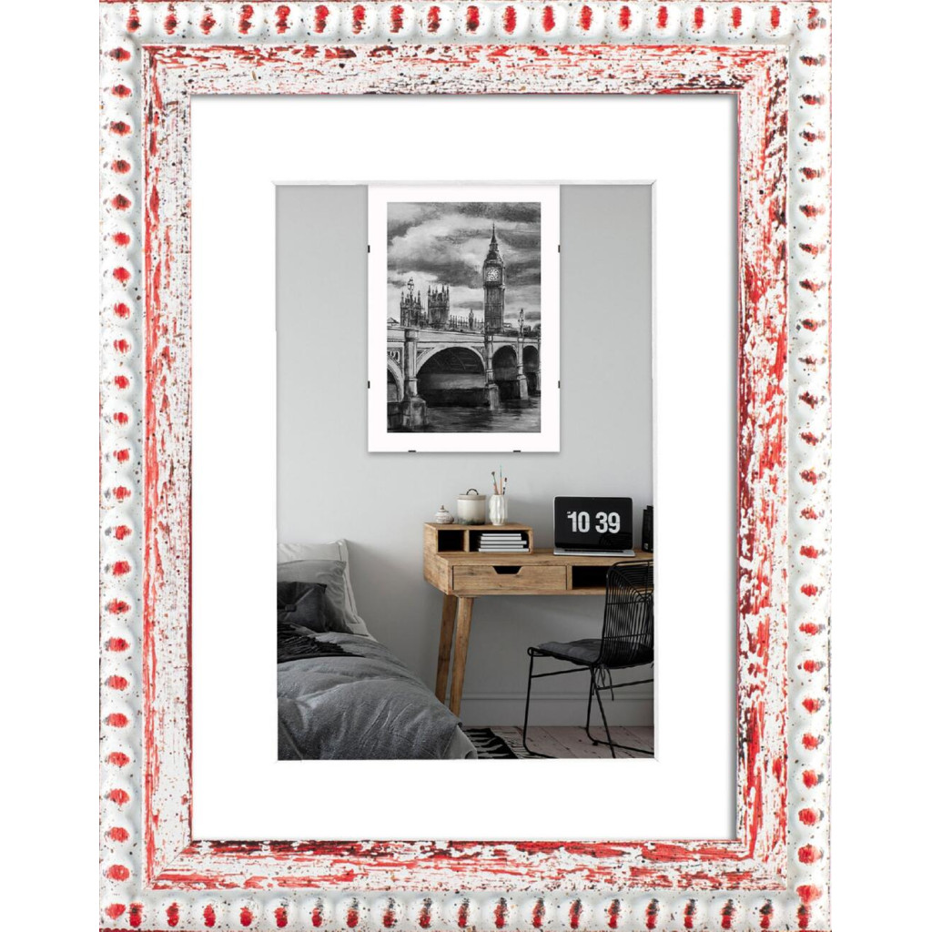 Фоторамка дерев'яна 15х20 під фото 10х15 багет: DL2506-12 Білий з червоним (з глянцевим прозорим пластиком 0.8мм, двп, паспарту) EmojiFrame