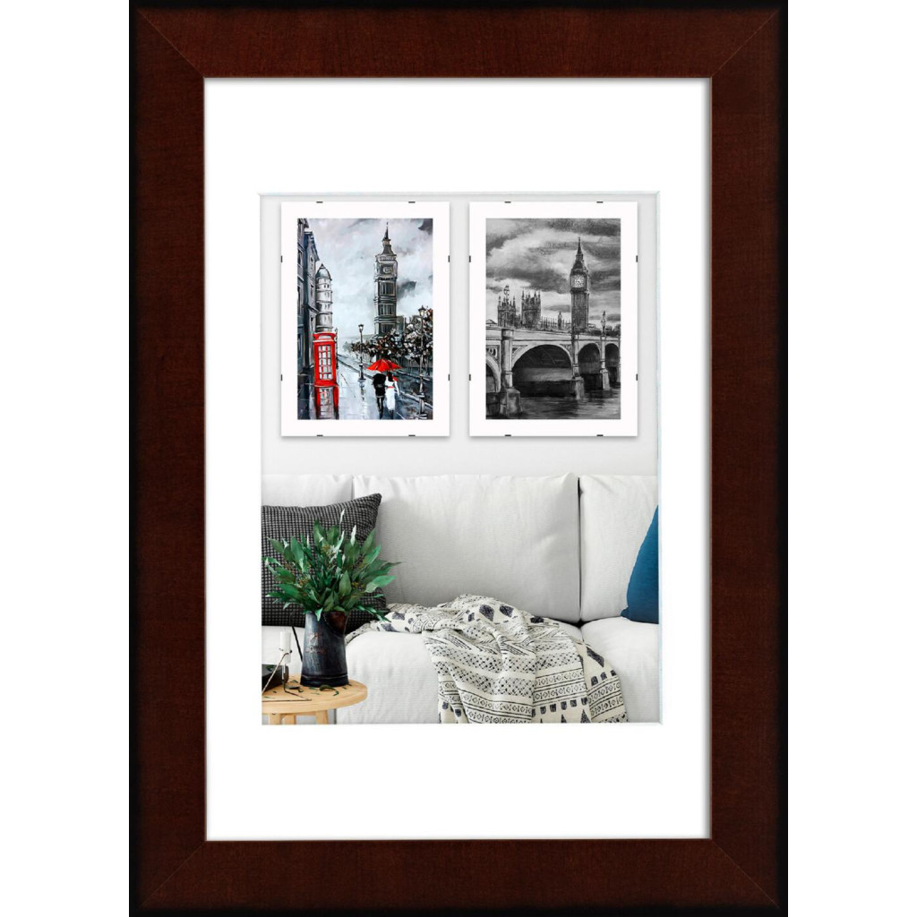 Рамка для фото деревянная 20х30 під фото 15х20 багет: DL3204-06 Темне дерево (з глянцевим склом 1-1.5мм, двп, паспарту) EmojiFrame