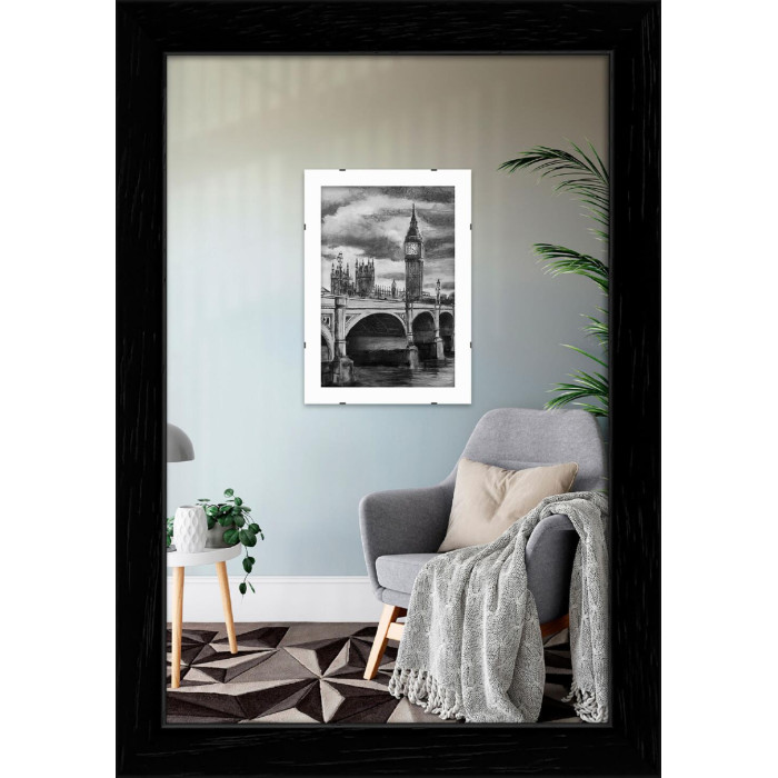 Фоторамка дерев'яна 10х15 багет: DL1507-03 Чорний (з глянцевим прозорим пластиком 0.8мм, двп) EmojiFrame