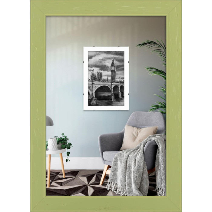 Фоторамка дерев'яна 10х15 багет: DL1507-08 Салатовий (з глянцевим прозорим пластиком 0.8мм, двп з ніжкою) EmojiFrame