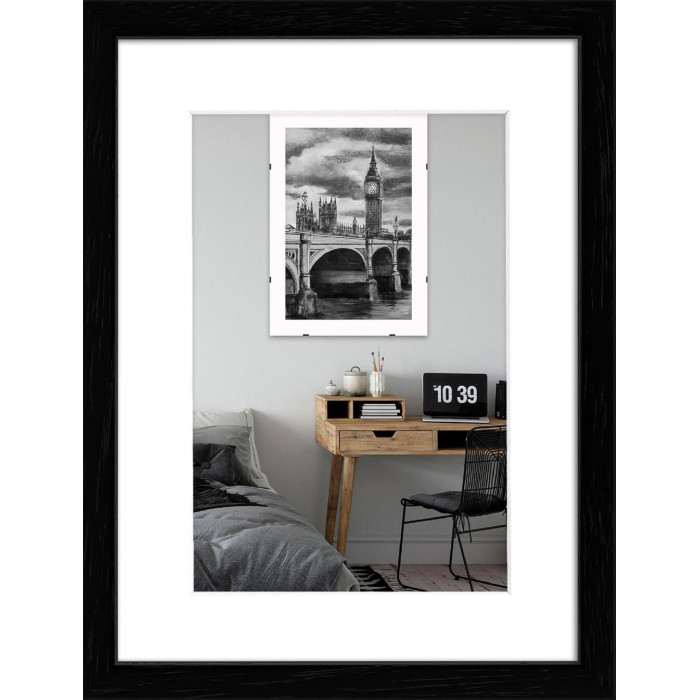 Рамка для фото деревянная 15х20 під фото 10х15 багет: DL1507-03 Чорний (з глянцевим склом 1-1.5мм, паспарту, двп з ніжкою) EmojiFrame