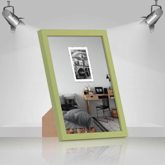 Фоторамка дерев'яна 15х20 багет: DL1507-08 Салатовий (з антибліковим склом 2мм, двп з ніжкою) EmojiFrame