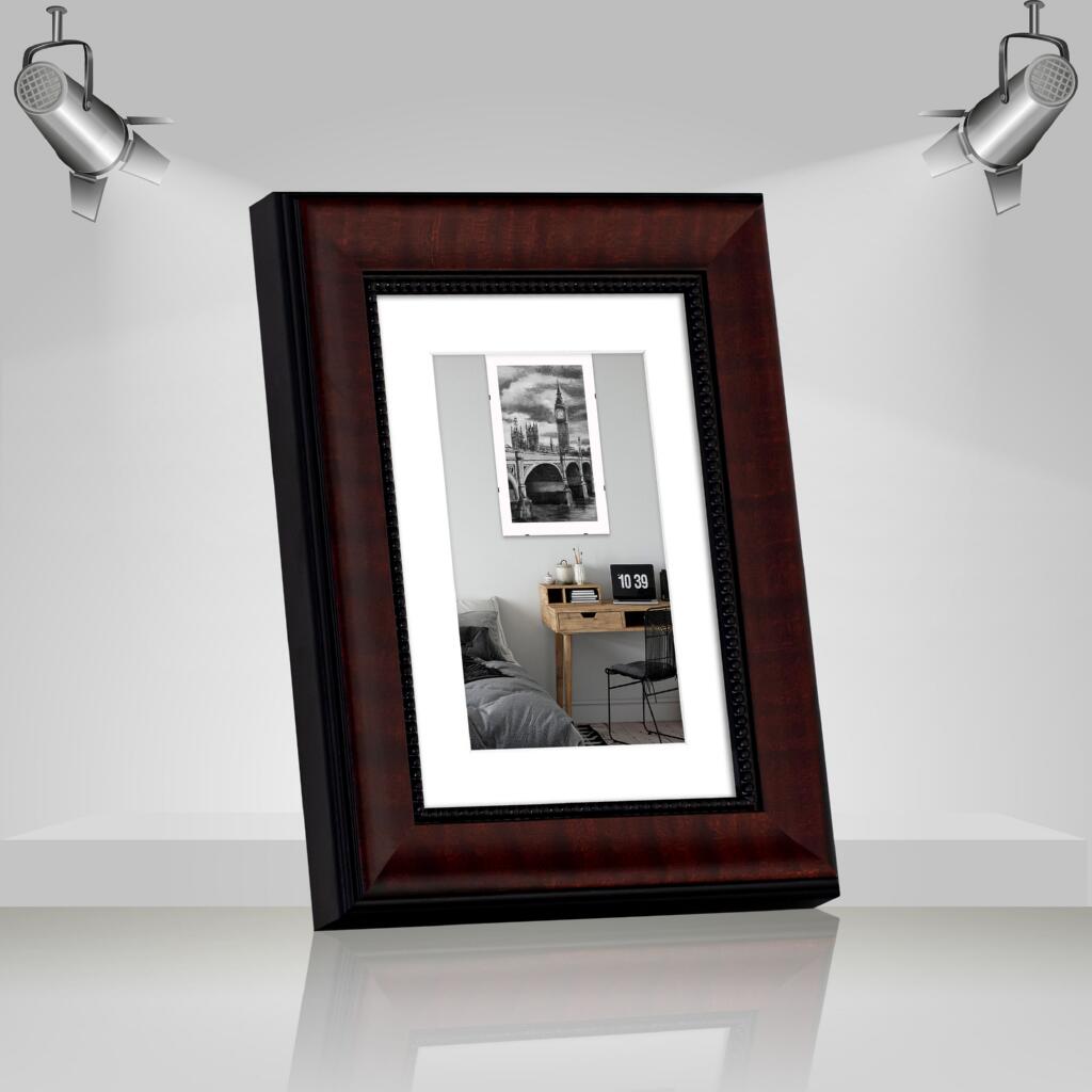 Фоторамка дерев'яна 15х20 під фото 10х15 багет: DL4101-01 Темне дерево (з антибліковим склом 2мм, двп, паспарту) EmojiFrame