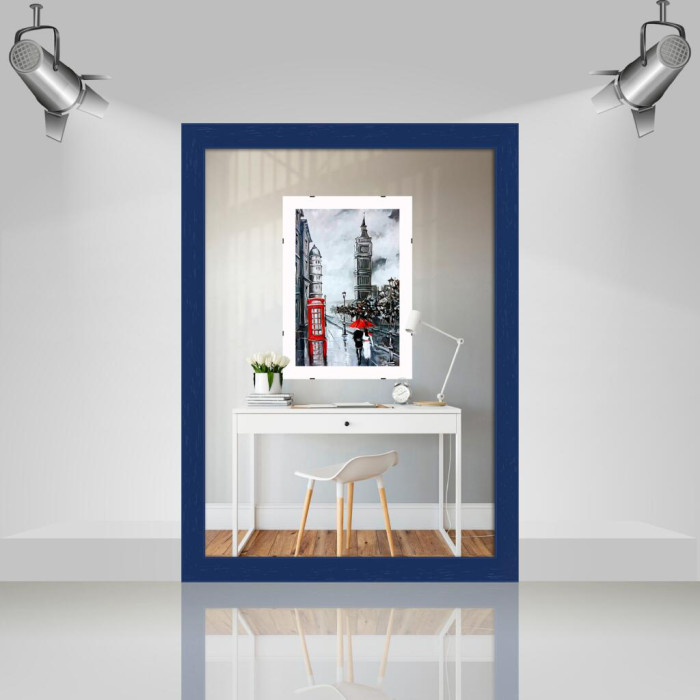 Рамка для фото деревянная 15х21 (А5) багет: DL1507-02 Синій (з глянцевим склом 1-1.5мм, двп з ніжкою) EmojiFrame