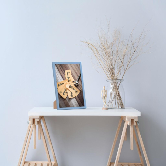 Фоторамка дерев'яна 20х30 багет: DL1507-05 Блакитний (з антибліковим склом 2мм, двп з ніжкою) EmojiFrame