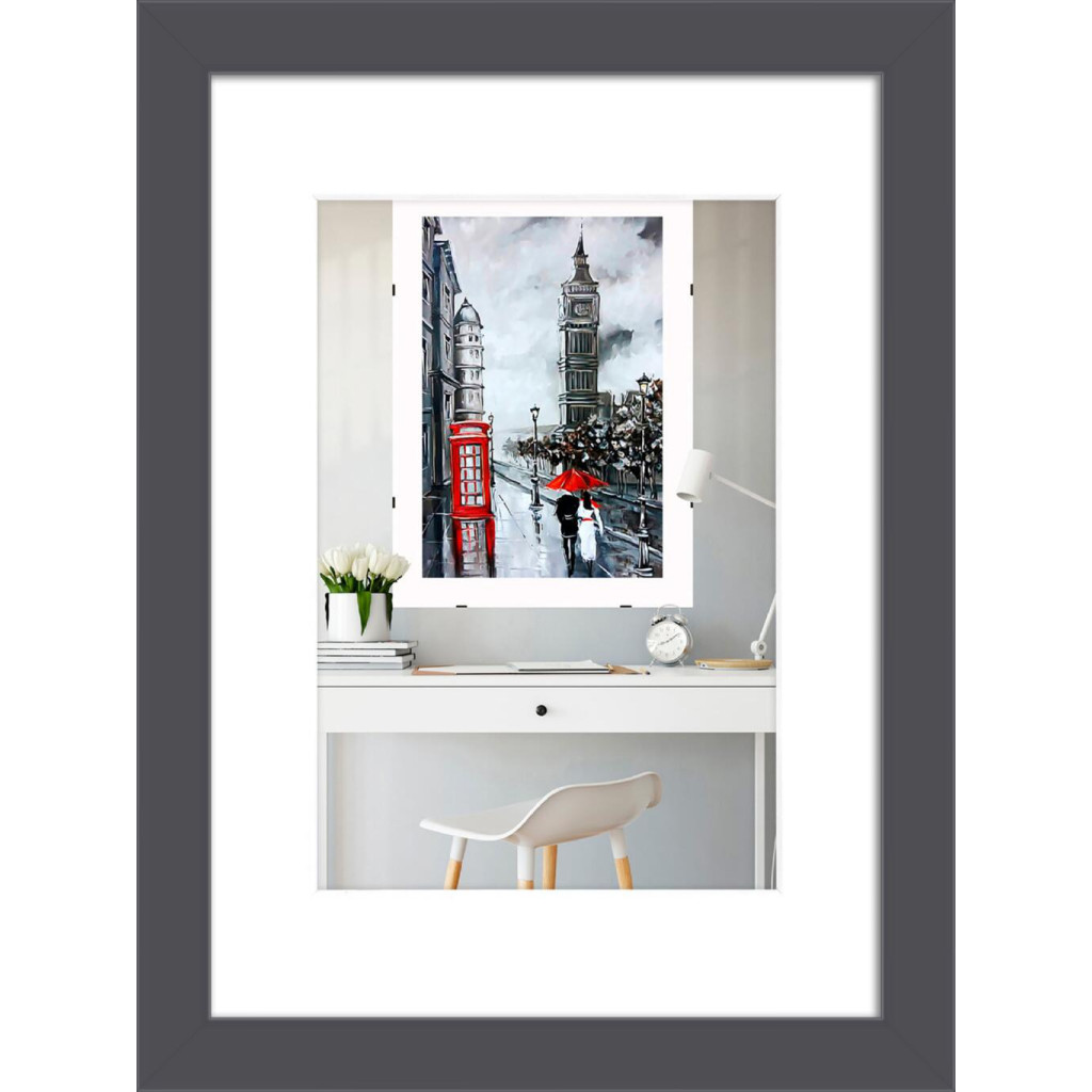 Фоторамка дерев'яна 15х21 (А5) під фото 10х15 багет: DL1703-01 Сірий (з глянцевим прозорим пластиком 0.8мм, паспарту, двп з ніжкою) EmojiFrame
