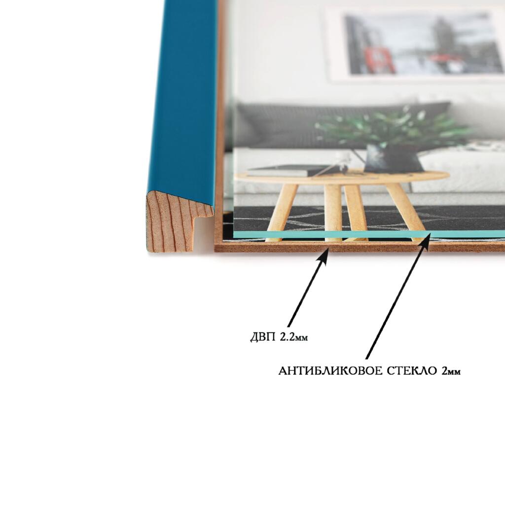 Фоторамка дерев'яна 21х30 (А4) багет: AH2220-15 Бірюзовий (з антибліковим склом 2мм, двп) EmojiFrame