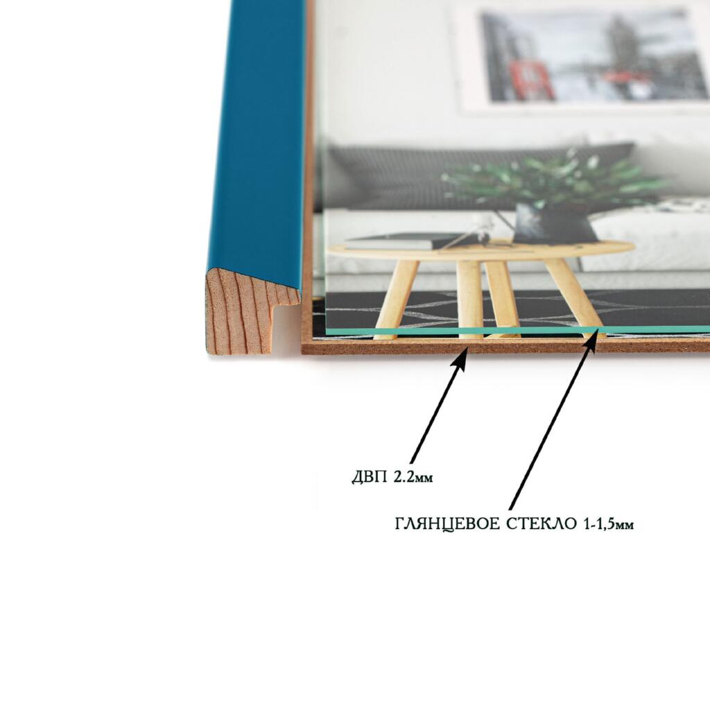 Рамка для фото дерев'яна 21х30 (А4) багет: AH2220-15 Бірюзовий (з глянцевим склом 1-1.5мм, двп) EmojiFrame