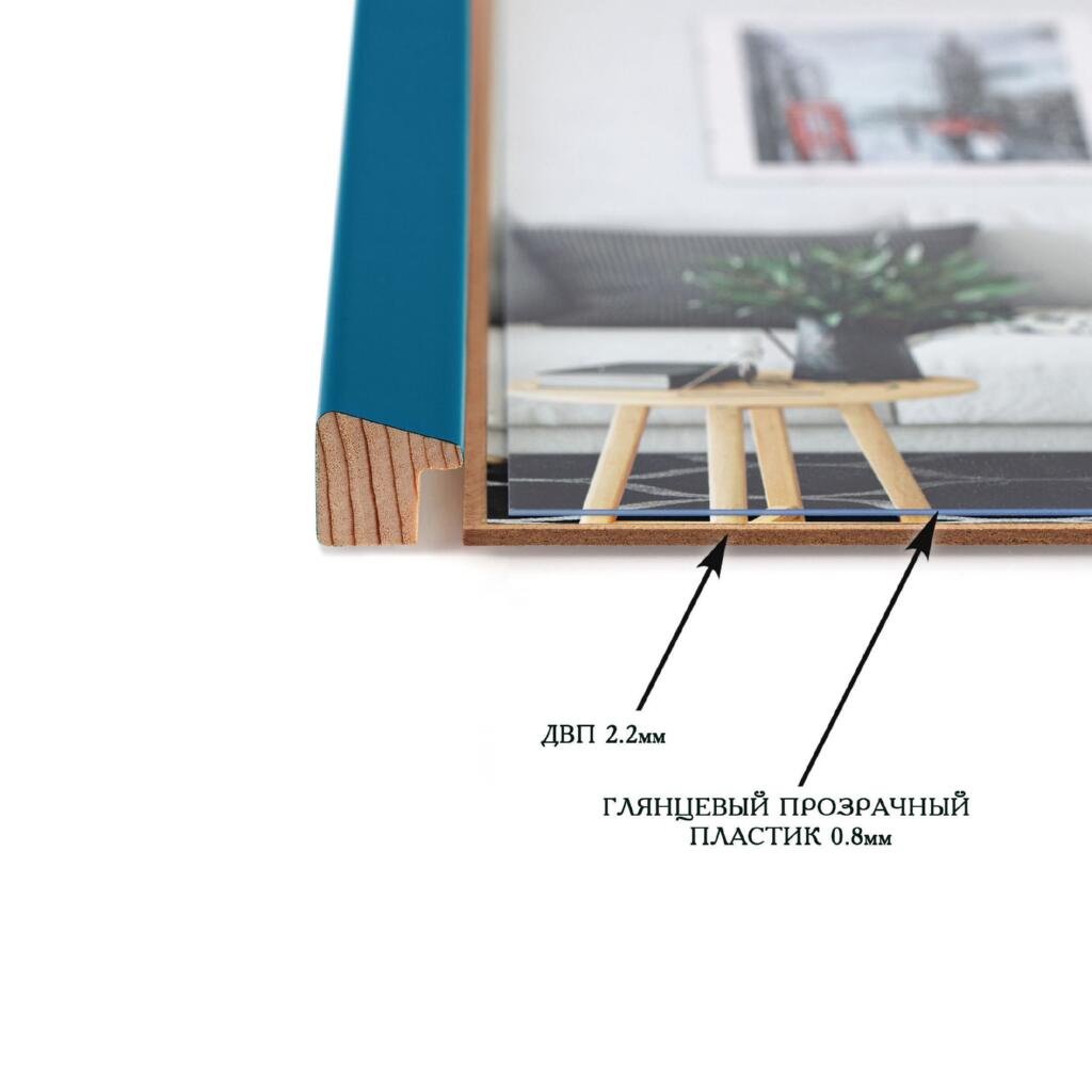 Рамка для дипломів дерев'яна 21х30 (А4) багет: AH2220-15 Бірюзовий (з глянцевим прозорим пластиком 0.8мм, двп) EmojiFrame
