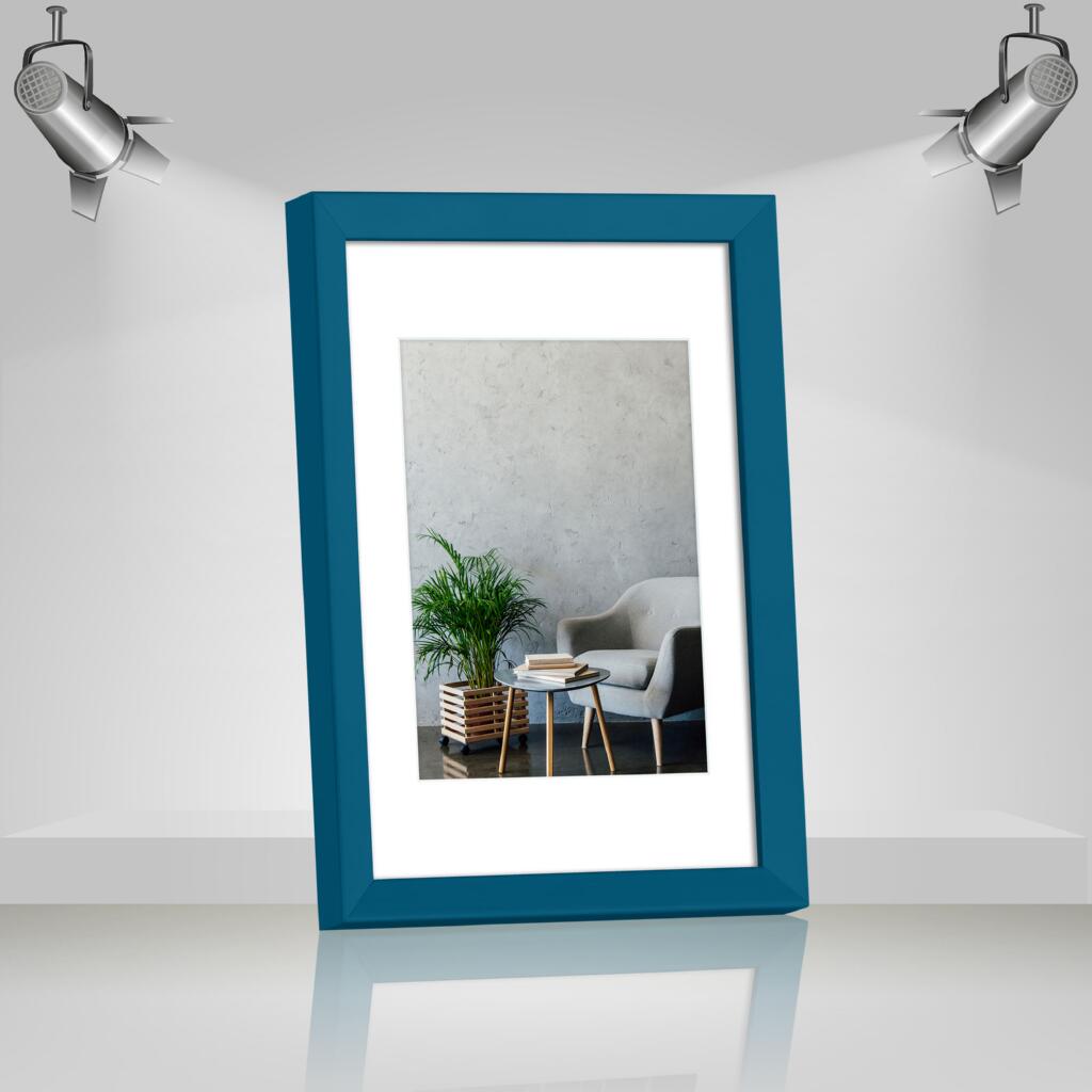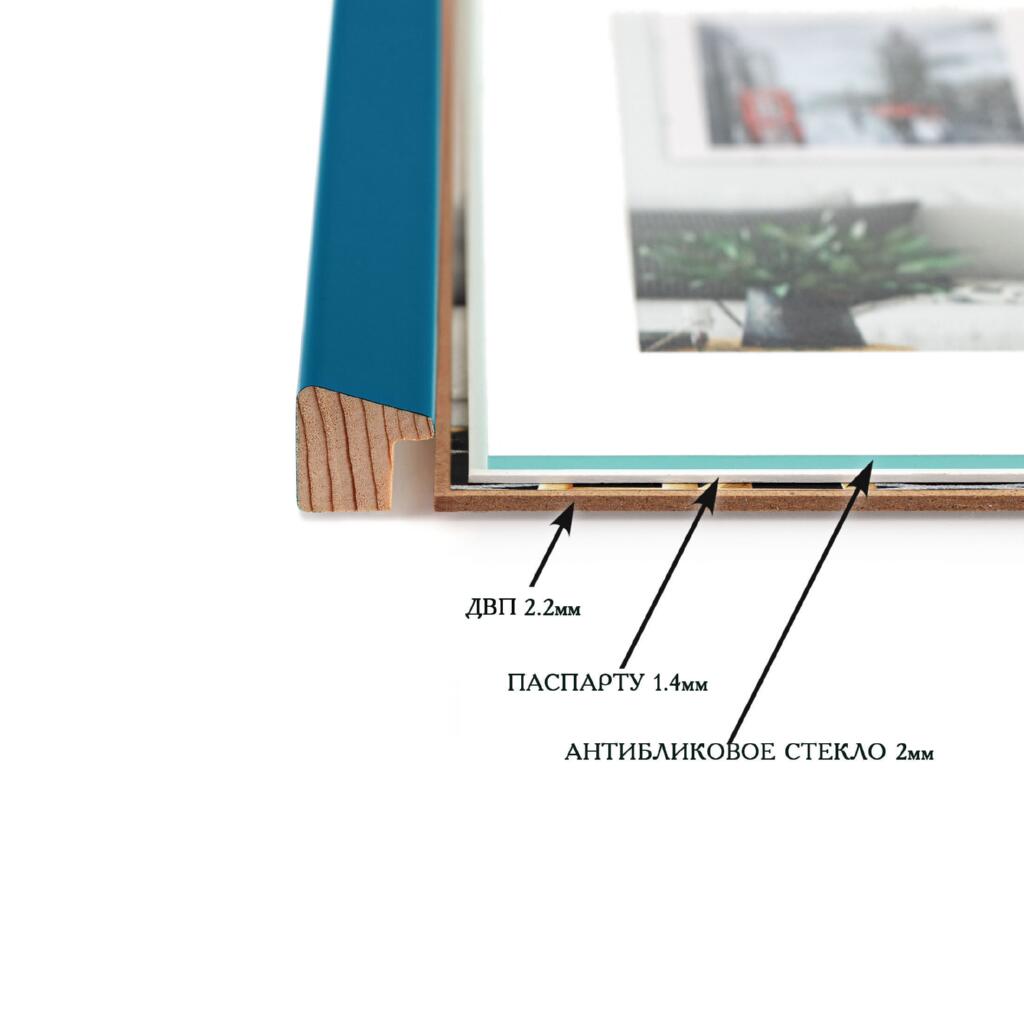Фоторамка дерев'яна 21х30 (А4) під фото 15х20 багет: AH2220-15 Бірюзовий (з антибліковим склом 2мм, двп, паспарту) EmojiFrame